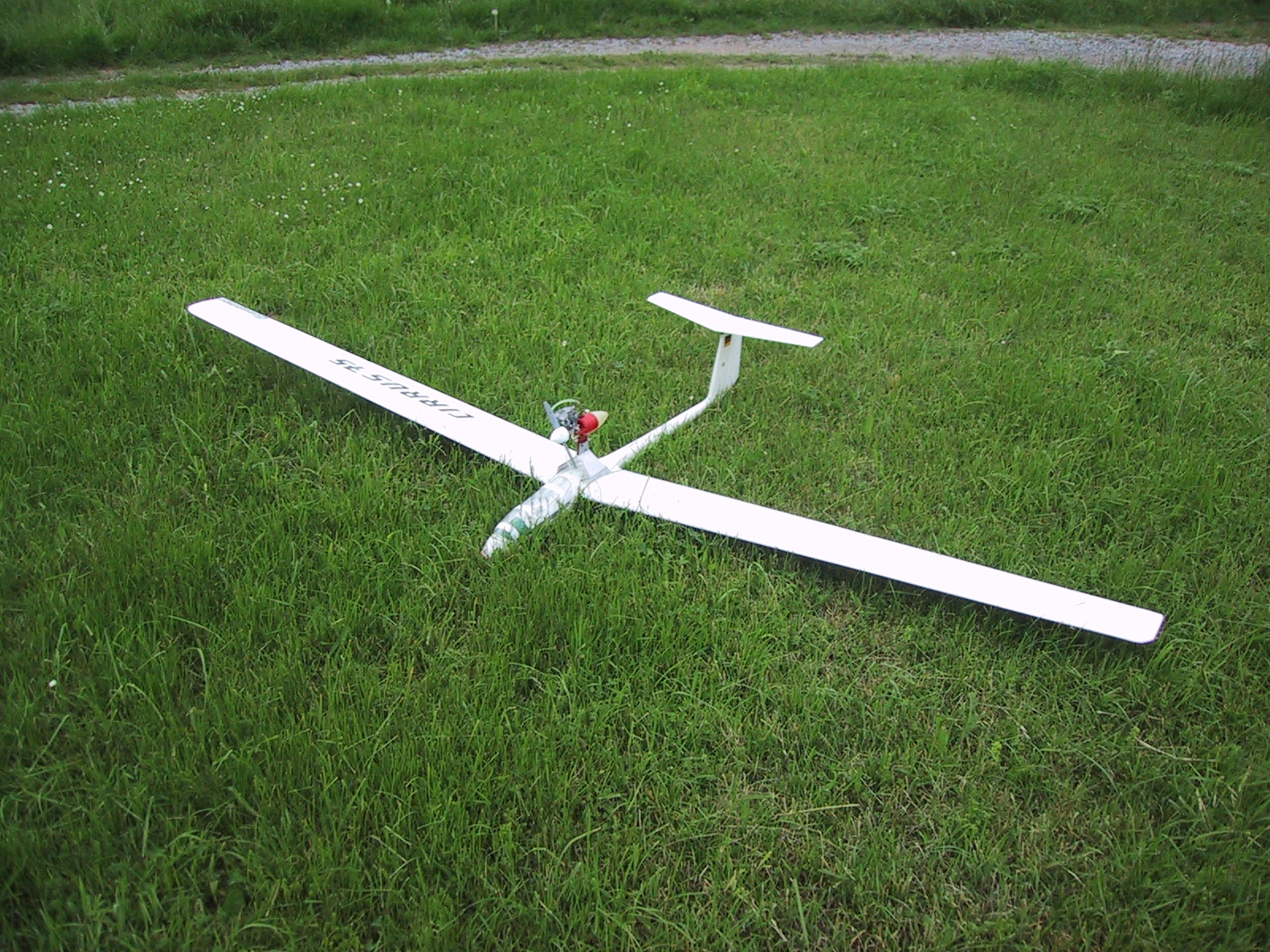 Nach der Reparatur der Fläche sowie des Umbaues des Motors war der Segler flugfertig und bereit für seinen Erstflug.Leider stellte sich heraus das in dem Höhenruder zu viel Spiel vorhanden war, so dass der Segler bei höheren Geschwindigkeiten immer anfing zu Flattern.