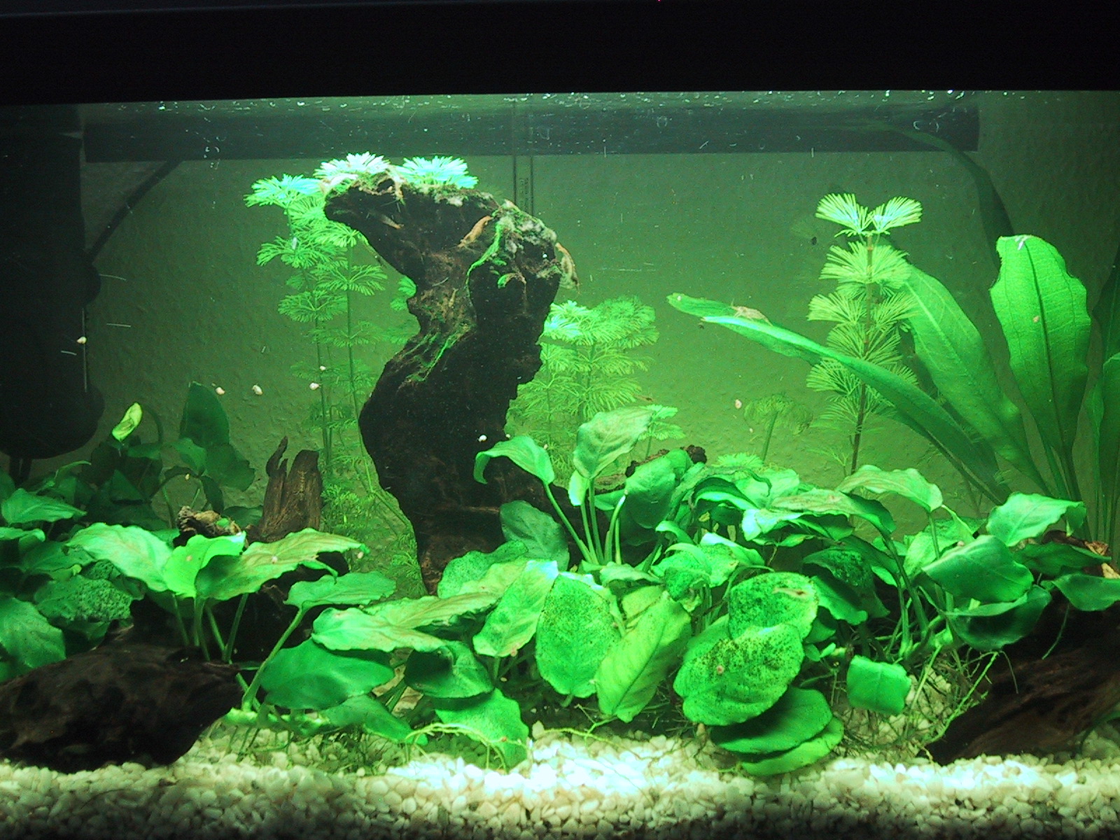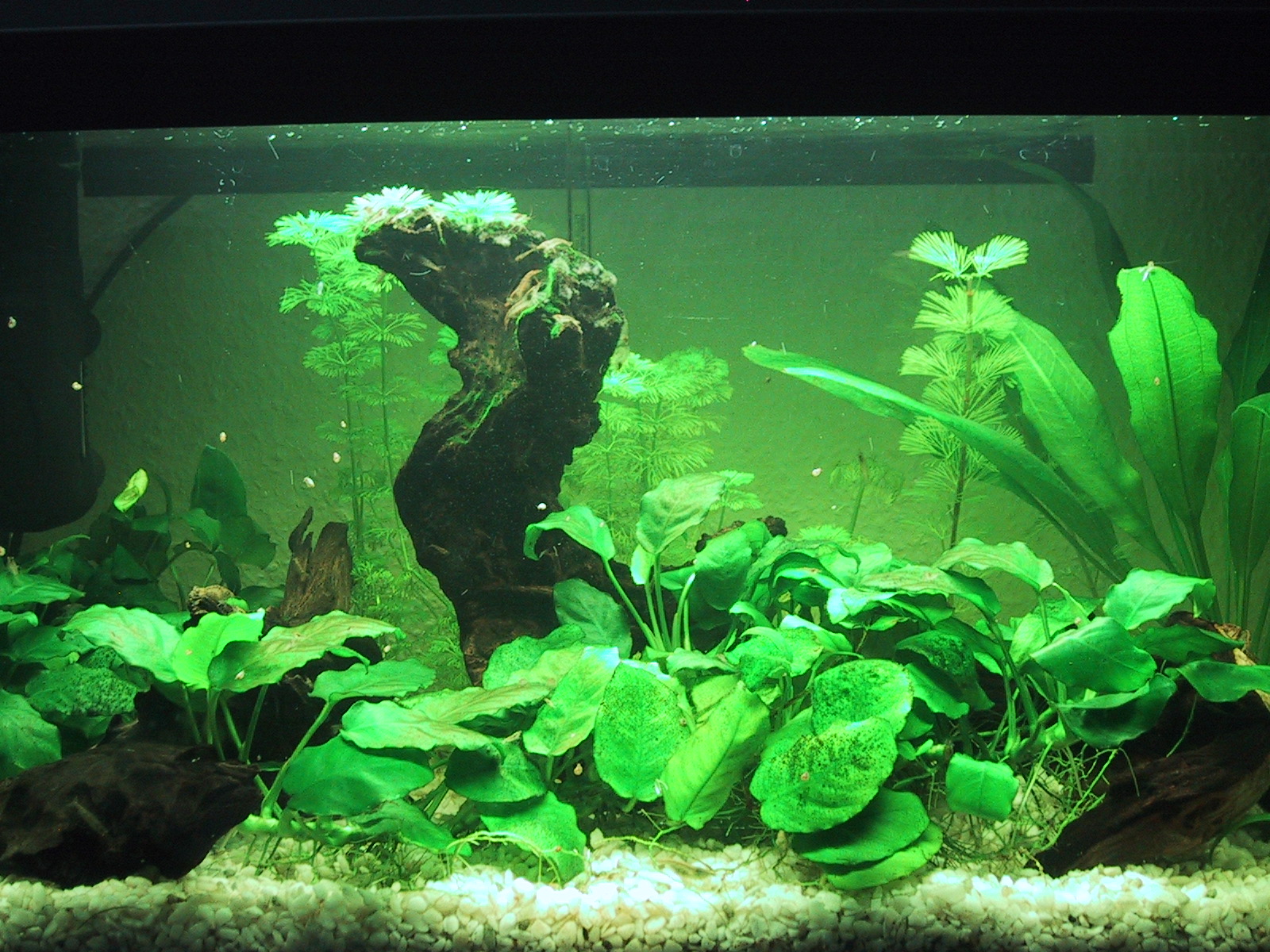 Nachdem ich einen Schwung Guppies von meiner Schwester bekommen habe, konnte ich endlich ausporbieren ob Gesellschaft die Farbbildung der Garnelen antreibt. Den 100 Prozentigen erfolg habe ich zwar nicht, aber ich bin der Meinung das es sich schon ein wenig bemerkbar macht.Um den Garnelen mehr Versteckmöglichkeiten zu bieten, habe ich eine ordentliche Portion Javafarn eingesetzt und ein paar Pflanzen aus meinen anderen Becken Zwischengelagert.